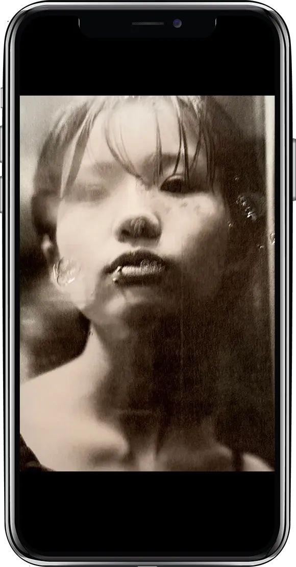 この作品は、この部門に出すために撮った作品なんですが、はじめは普通に白バックで撮影したものにしようと思っていました。ですが、それだと物足りなさを感じたので、モデルさんに公衆電話の中に入ってもらい、それを外から撮影してみました。その時は雨上がりだったこともあり、ガラスに水滴がついて曇っていて、それが偶然良い雰囲気を出してくれました。この写真の空気感をもっと伝えるには…と、その後も試行錯誤をして、最終的には、撮影した写真をプリントして、それを水を溜めたシャンプー台に浮かべてスマホで撮影する、という手法に行き着きました。たくさん考えてこのように一つの作品ができたこと、そこを評価していただけたことをとても嬉しく思います。
